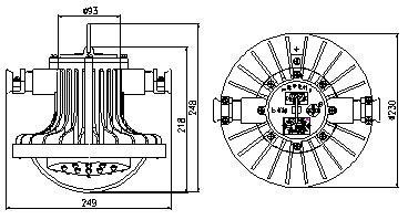 上蓋設(shè)有銘牌,安裝環(huán)。接線電源腔與LED光源腔有符合規(guī)定的隔爆接合面,接線電源腔與外界有符合規(guī)定的隔爆接合面,巷道燈與外界有符合規(guī)定的密封墊。